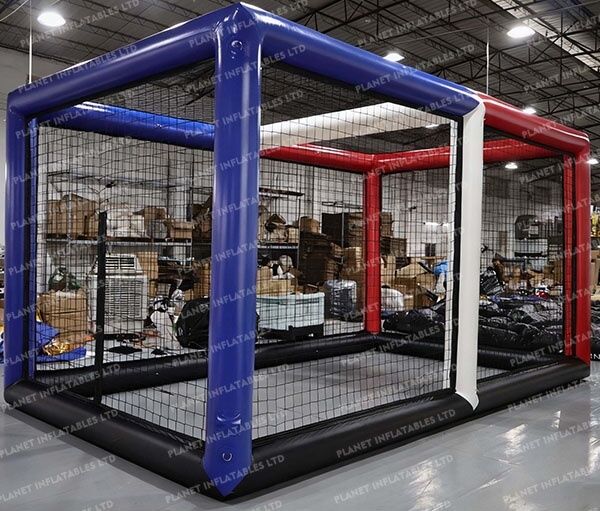 Verpakking Details: Zwarte opblaasbare slagkooi in PVC-zeilzak en pomp in doos